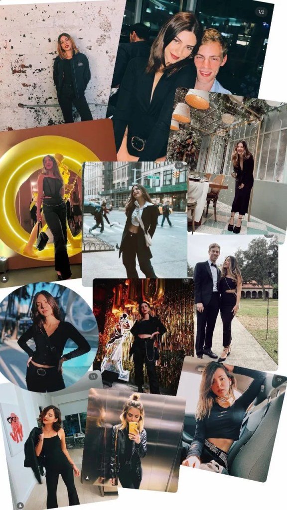Seguidamente, compartió imágenes del feed de su cuenta en la red social de la camarita, donde la también cantante se muestra con atuendos mayoritariamente negros.